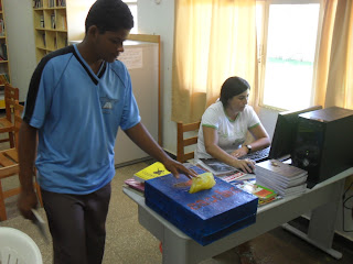 Eu até pensei em doar para a biblioteca municipal, no entanto, vi que de uma certa forma não seria tão bem cuidado como sei que vai ser aqui, eu já fiz alguns empréstimos de livros aqui na escola e precisei dar informações sobre mim e isso significa que aqui sim, a escola tem uma preocupação com seus exemplares, sendo eles quais for e são conservados em ótimo estado na medida do possível, isso é admirável.